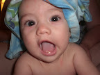 Well it seems as though this kiddo is not only growing like a weed physically, but intellectually.. He has been cooing and making babble for the past few weeks now.. it may be gibberish now, but I can already hear him trying different vocal "techniques." First it was just the quick "AH!" and just last night it sounded like he was trying to say something to me, but couldn't for lack of a vocabulary.. Not to mention he is a smiler! I was thinking that it may be time to start to read to him, but his attention span is not quite there yet.. he will stay interested if you stare at him, but if you look away, he'll get upset and call you back. Anyway.. here is a sneak peak at new pics uploaded to his Picasa album.